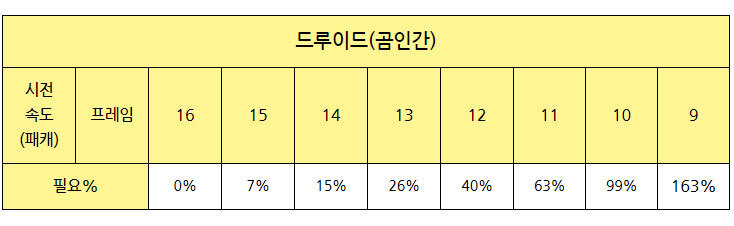 | 필요% | 0% | 8% | 16% | 27% | 42% | 65% | 102% | 174% | |